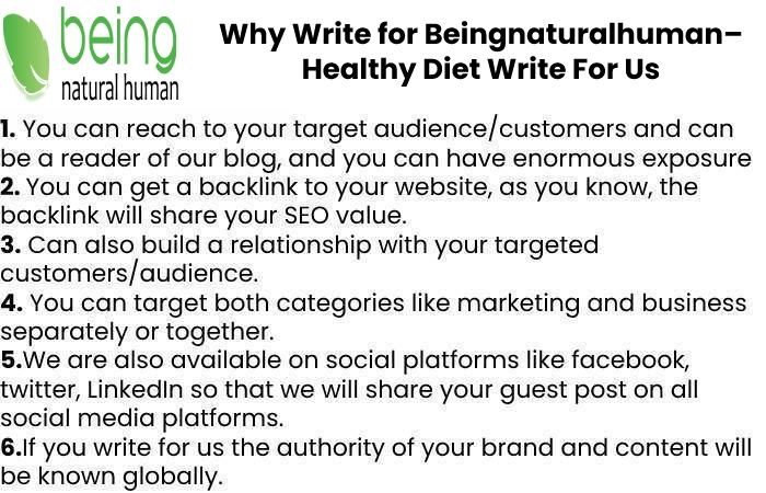 Why Write for Beingnaturalhuman – Healthy Diet Write For Us